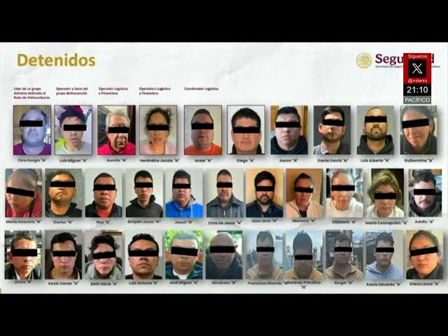 En conferencia de prensa, el secretario de Seguridad y Protección Ciudadana, Omar García Harfuch, destacó los resultados de acciones estratégicas para combatir la extracción ilegal de hidrocarburos, donde elementos de la Secretaría de Seguridad y Protección Ciudadana (SSPC), Secretaría de la Defensa Nacional (Defensa), Secretaría de Marina (Semar), Fiscalía General de la República (FGR) y Guardia Nacional (GN) junto con policías de la Secretaría de Seguridad Ciudadana (SSC) de la capital, Pemex y autoridades locales, en los estados de Querétaro, Ciudad y Estado de México, tras ejecutar 12 órdenes de cateo, realizaron un decomiso histórico, donde fueron detenidas 32 personas, aseguraron armas de fuego, vehículos de alta gama y tractocamiones con semirremolques utilizados para el trasiego de combustibles.