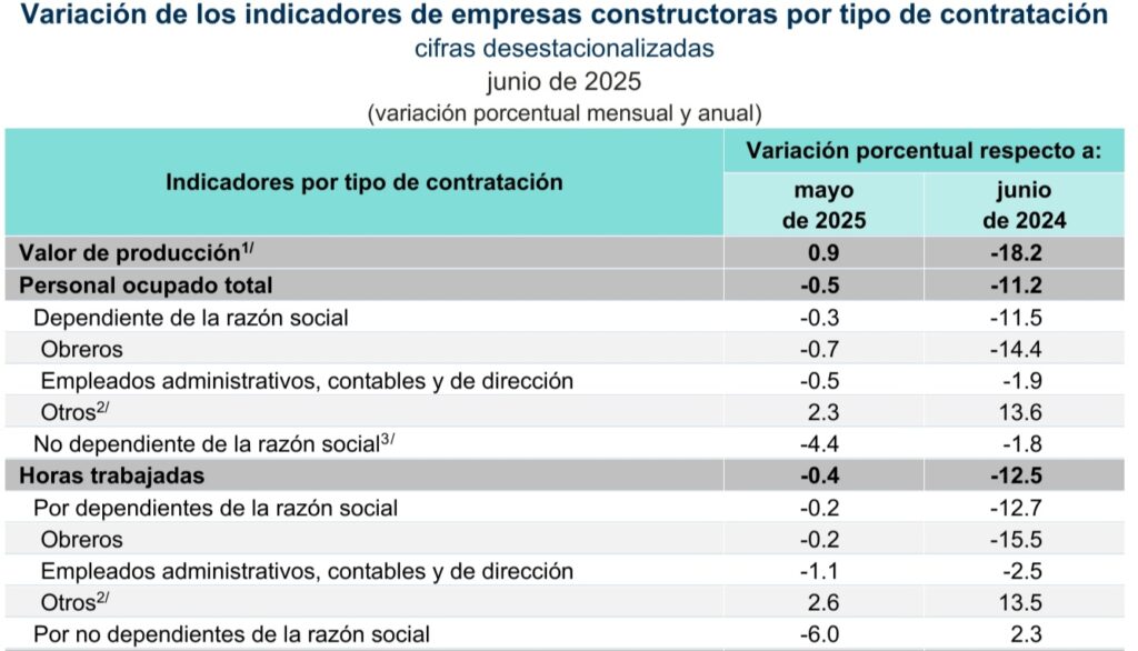 Finalmente, en línea con la contracción que reporta el valor de la construcción, la nómina en las empresas constructoras reporto una caída de -0.5 por ciento de mayo a junio de este año, con lo que a tasa anual se contrajo -11. 2 por ciento en el sexto mes de 2025.