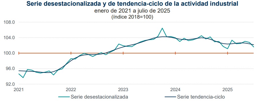 En términos acumulados, resultó que de enero a julio de este año, la actividad industrial bajó -1.5 por ciento con relación al mismo periodo de 2024. Para dimensionar el actual desempeño de la industria en México, resulta oportuno destacar que el dato negativo acumulado en los primeros siete meses de este año es el primero observado para el mismo periodo desde el 2020, cuando (en el marco de la suspensión de actividades por el brote del COVID19), el dato acumuló un desplome de -13 por ciento. Es claro, el sector industrial está en la peor crisis en cinco año.