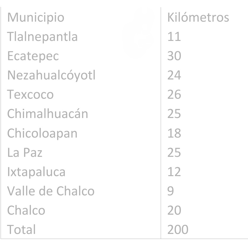 Estos primeros trabajos consisten en un levantamiento de información en las demarcaciones Chalco, Valle de Chalco, Ixtapaluca, Los Reyes La Paz, Chicoloapan, Texcoco, Ecatepec, Tlalnepantla, Chimalhuacán y Nezahualcóyotl para determinar la instalación del alumbrado público.