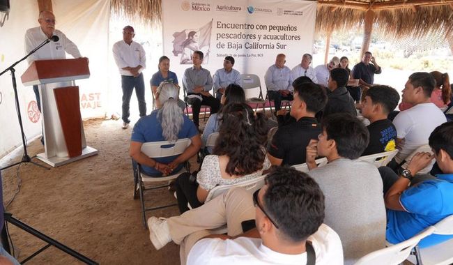 En su encuentro con pescadoras, pescadores, acuacultoras y acuacultores de pequeña escala en la zona de El Conchalito, municipio de La Paz, Baja California, el funcionario federal señaló que es necesario sumar esfuerzos en favor de una pesca y acuacultura más resilientes y sustentables, ya que estas actividades son clave en la producción de alimentos sanos e inocuos, y representan un importante activo económico y social para las comunidades.