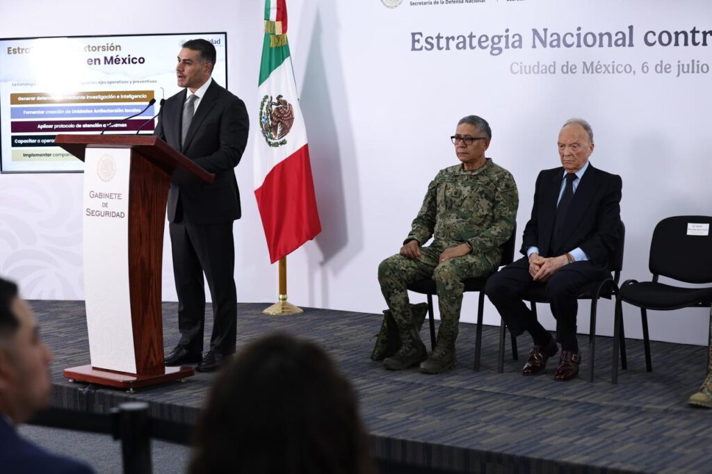 Por instrucciones de la Presidenta de México, Claudia Sheinbaum Pardo, el secretario de Seguridad y Protección Ciudadana, Omar García Harfuch, presentó la Estrategia Nacional contra la Extorsión para prevenir y proteger a la población de este delito.